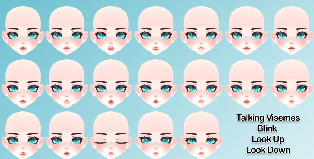 I've learned I am not much of an eye texturer myself, so I've included a royalty free asset created by Metra-Philia. The eyes are UV mapped separately from the face texture, so you can easily use any free eye textures out there.